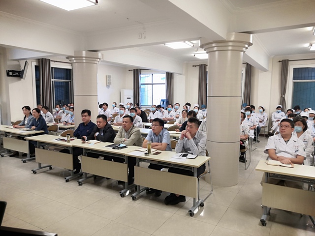 9月22日下午,我院召开2020年国庆、中秋节期间工作部署会议,贯彻落实省卫健委有关会议精神,安排部署“双节”期间医疗安全、廉洁过节、秋冬季常态化疫情防控等重点工作。院领导班子成员、临床医技科室主任、护士长、行政部门负责人、重点岗位工作人员120余人参加会议,会议由院长贾延主持,党委书记李广勤讲话。