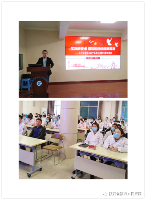 为深入学习贯彻习近平总书记来陕考察重要讲话精神,从延安精神中汲取信仰和力量,同时为满足我院卫生专业技术人员继续教育公需课的学习需求,我院邀请西北大学马克思主义学院赵沛教授来院授课,全院150余名医护人员聆听了本次课程。