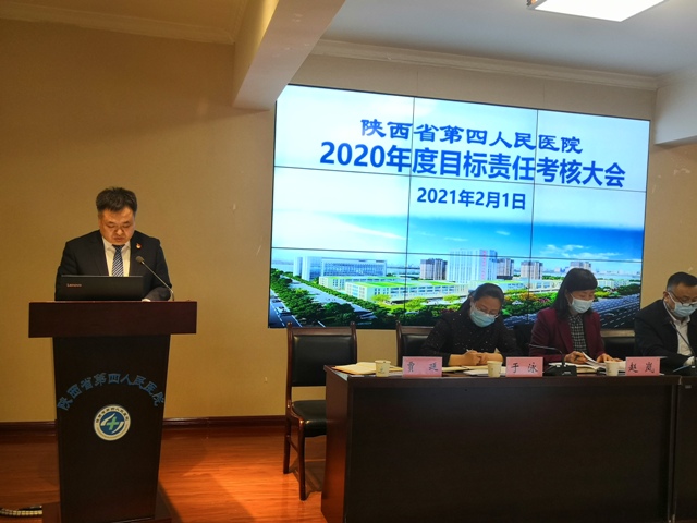 贾延院长代表院领导班子及全院职工向大会做2020年度医院工作报告,报告主要对医院年度业务工作完成、领导班子政治思想建设、领导能力、工作实绩、党风廉政建设、作风建设、领导干部德、能、勤、绩、廉等方面的现实表现等情况进行了汇报。他表示,2020年是极不平凡的一年,我院在委党组的正确领导下,在相关处室的大力支持下,全院干部职工凝心聚力共同努力;认真落实党委领导下的院长负责制,扎实开展学习习近平总书记来陕考察重要讲话及疫情防控指示精神,确保“六保”“六稳”,积极推动复诊后医院业务的回升。一手抓疫情常态化工作,一手抓医院发展,以加强班子建设为重点,以年度目标考核和三级公立医院绩效考核为抓手;开展健康扶贫工作,全面较好地完成了年度目标各项工作,实现了医院既定工作目标。