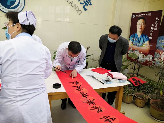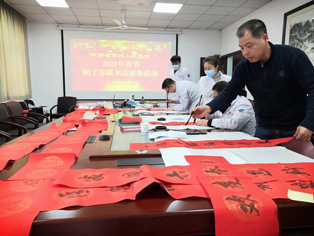 爆竹声中一岁除,春风送暖入三秦。又是一年辞旧迎新时,为了弘扬与传承中华民族优秀文化传统,倡导积极向上向善的文明新风尚,进一步活跃职工文化生活,增加喜庆、祥和的节日气氛,同时传达对新年的祝福。2月7日和9日,医院举办了2021年迎新春、写春联、送祝福书法活动,院党委书记李广勤、院长贾延、院领导班子成员现场观摩指导,各科室医护人员代表参加了活动。