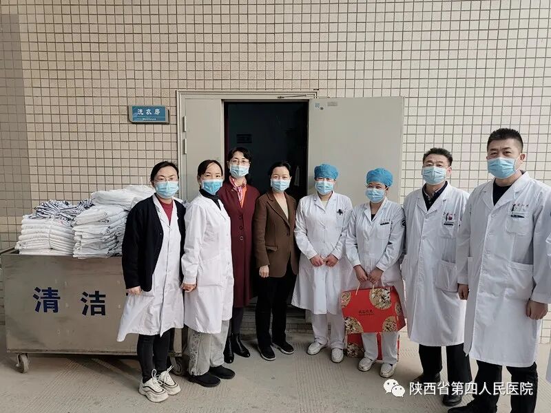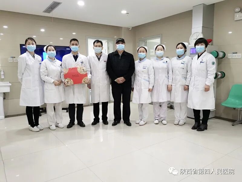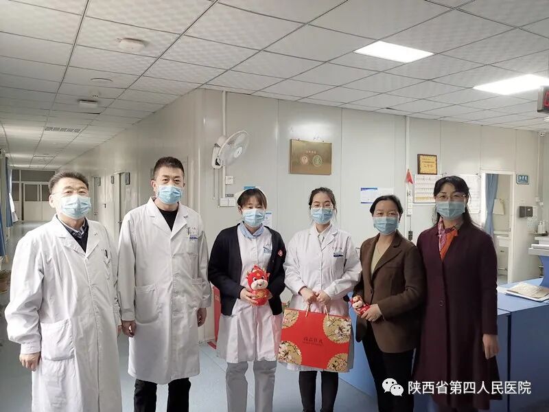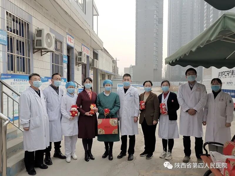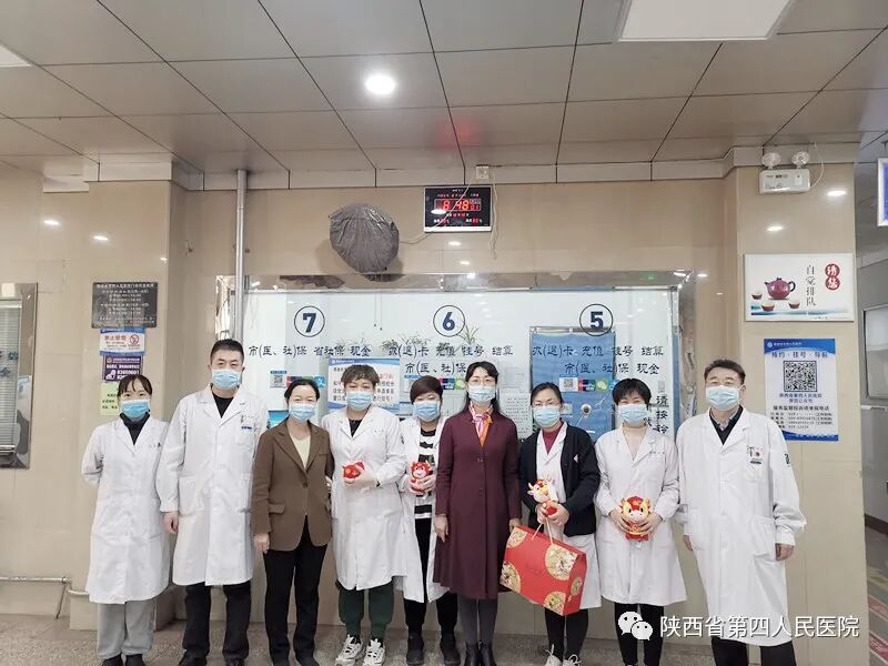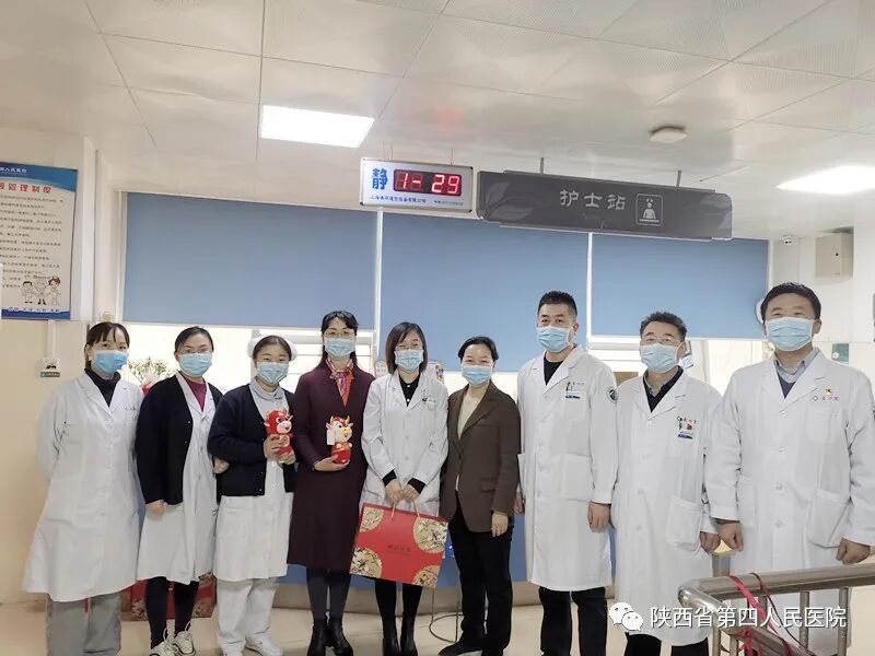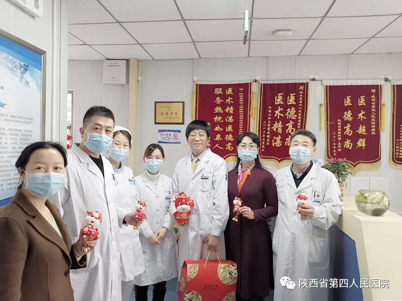2021年2月10日大年三十,早上8时半,陕西省第四人民医院党委书记李广勤、院长贾延等院领导在医院主要职能部门负责人的陪同下,来到医院各科室,向坚守在一线岗位的工作人员和住院患者表示亲切的慰问,并向他们送上新年祝福,恭贺新春。