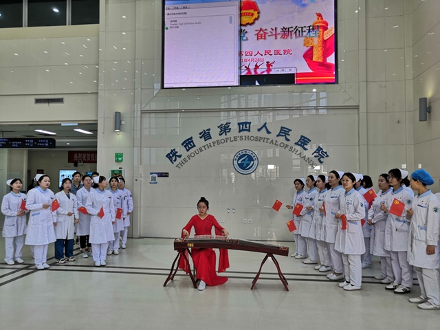 “我和我的祖国一刻也不能分割,无论我走到哪里都流出一首赞歌……”清澈的歌声缓缓响起,悠扬的琴音从大厅一楼传来。近日,一场由医护人员倾情演绎的《我和我的祖国》歌舞快闪在我院新住院楼大厅上演,现场国旗飘扬、群情激昂,处处洋溢青春朝气、爱国激情。