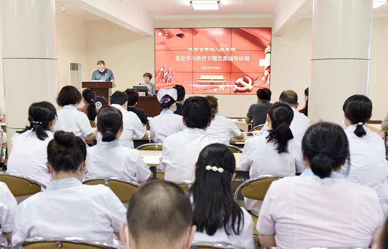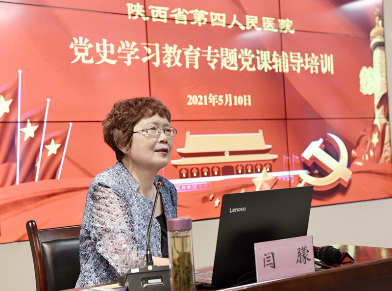根据委党组党史学习教育总体工作安排,按照我院党史学习教育工作方案,5月11日下午,我院邀请省委党校党史教研部闫朦教授做党史学习教育专题党课辅导。会议由贾延院长主持,院领导班子成员、党支部书记、支委、科室主任、护士长、党员代表约130余人参会。