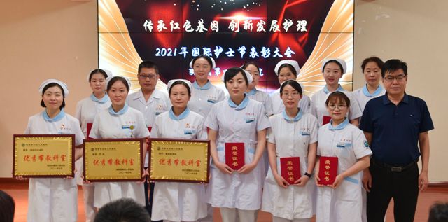 为了纪念第110届“5.12”国际护士节,弘扬南丁格尔精神,传承红色基因、创新发展护理,鼓励广大护理工作者立足岗位,树立榜样、弘扬护理职业精神。5月11日下午,我院举办2021年5.12国际护士节纪念表彰大会,会议采取了线上线下同时进行的形式。党委副书记、院长贾延,党委副书记郭皖营,副院长刘彦君、聂书伟,纪委书记王培以及职能部门、临床科室主任、护士长、护士代表近100余人参加了会议。