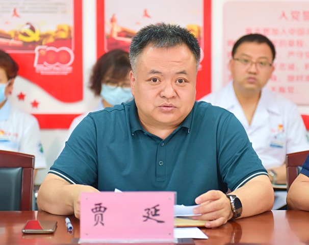 党委副书记、院长贾延从动员安排、学习教育、政治引领、专题培训、我为群众办实事、特色创新工作等六个方面汇报了我院党史学习教育开展情况,纪委书记王培汇报了医院党风廉政建设和以案促改工作情况。