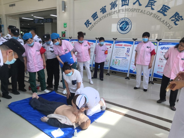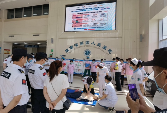 6月2日下午,陕西省第四人民医院胸痛中心积极响应中国医学救援协会、中国心血管健康联盟、美国华裔心脏协会联合发起的“中国心肺复苏周”主题宣教活动,在医院住院部大厅举办“中国心肺复苏周2021——“关注心脏骤停,生命‘救’在身边”主题宣教活动”。