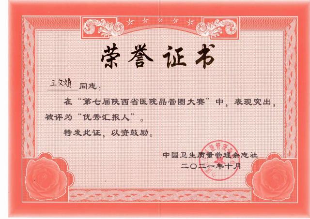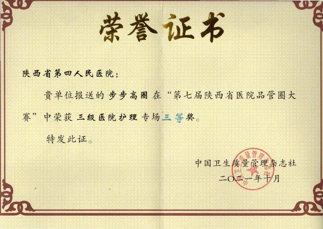 10月13至15日,由中国医院品质管理联盟指导,陕西省卫健委支持,中国卫生质量管理杂志社主办的第九届全国医院品管圈大赛暨第七届陕西省医院品管圈大赛在西安举行,来自全省各级医疗机构173个圈组报名参赛,经过专家团队初筛,最终85个圈组入围参与本次大赛。我院院长贾延、副院长刘彦君受邀参加此次会议,护理部伤口小组的“步步高圈”参加了本次大赛。