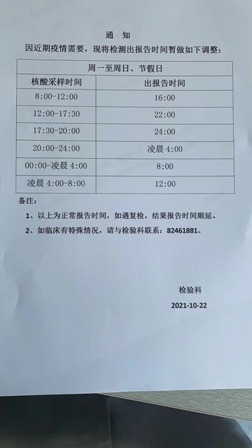 开放时间:全天24小时开放,检测对象:住院患者、陪护人员以及社会愿检尽检人员。