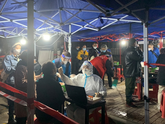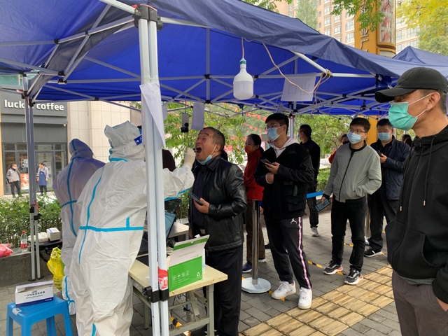 10月23日晚至今,队员们分批次轮班工作,晚上气温骤降,秋风瑟瑟,为按时完成采样任务,拿出最好的状态投入到核酸采集工作中,她们忍受着寒冷和深夜的倦意,每一班都连续工作近5个小时,敬业的工作态度也得到了社区群众和工作人员的肯定。