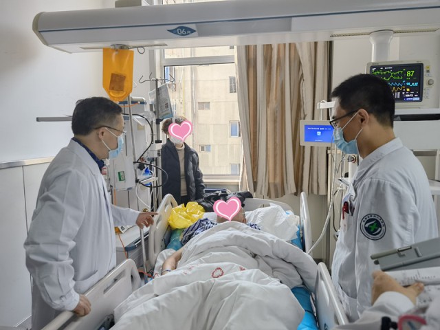 11月11日早上,副院长周栋到心内科CCU病房查房看望了该患者和家属,对危重症患者的成功抢救和胸痛中心成员科室医护人员密切配合的工作给予了充分肯定,并祝愿患者积极配合医护人员后续治疗,早日康复。患者家属非常感谢,称赞我院是真正建立了“一条绿色通道、一条生命通道,感谢医护人员给了我爱人第二次生命。”