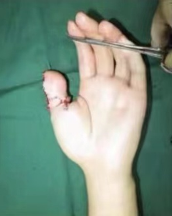该手术为拇指4度缺损全形再造手术 ,手术成功取决医生对显微血管、神经、肌腱的精准吻合和再造后新拇指形态逼真皮瓣的美学设计能力,术中稍有不慎会导致手术失败,手术失败不仅会导致无法再造拇指,而且还会导致脚趾趾头的缺失。