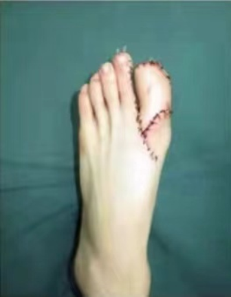 近日,患者来院接受二次手术,我院骨二科(手足显微外科)庞仲辉副主任医师、李会晓副主任医师、何小鹏副主任医师等专家在进行了一系列详细检查之后,为患者制定了适宜的手术方案。经过14个小时的手术,将同侧足背皮瓣及第2趾部分跖骨和趾骨作为供区皮瓣及再造拇指,供区伤口缝合。目前,患者再造拇指血运良好,再造手指成活。