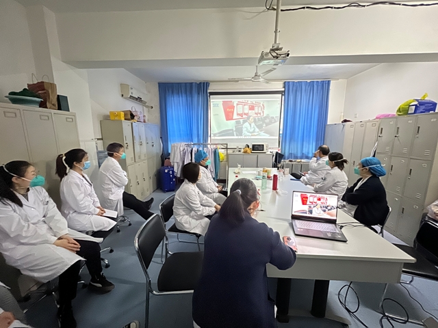 为积极应对本轮疫情,切实做好新冠肺炎出院患者康复治疗及健康管理工作,促进患者尽快恢复健康,重返家庭与社会,同时进一步提升我院医务人员新冠肺炎防控水平,防止院内交叉感染,保护医患健康,按照省新型冠状病毒感染肺炎疫情防控工作领导小组医疗救治组的要求加强院感防控知识培训。1月8日上午,结合我院实际情况,感控科采用线上线下相结合的方式,再次对医务人员进行培训,强化其熟练掌握新冠肺炎个人防护及感染防控知识,住院病区、门诊、医技科室、行政后勤保障部门全员参加,培训由感控科李小青主任主持并讲座。