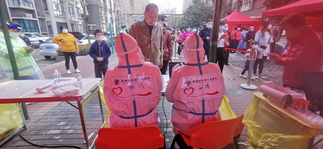 医院党委高度重视新一轮疫情防控工作,迅速召开会议部署安排,疫情防控领导小组根据医院实际情况,进一步完善了各项防控预案,加强了溯源流调、防控督查工作,根据省市联防联控指挥部和省卫生健康委指示精神,组织力量开展了核酸检测筛查工作。从3月6日开始,医院医护人员在完成一夜的医疗值守任务后,脱下白大褂来不及休息,又穿上防护服加入到核酸检测任务中,同志们没有抱怨,只想着更快、更快,以更快的速度与病毒赛跑,争分夺秒开展筛查,做好防治工作,以坚定的决心打赢这场疫情防控阻击战、歼灭战,保一方平安。