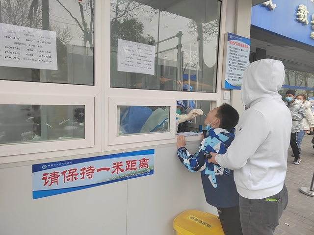 复课在即,前往省第四人民医院进行核酸检测人员急剧增加,等候采样的群众排起了长队。3月20日上午,为应对高峰期核酸检测人群增多。医院发热门诊核酸采样室迅速启动应急机制联合信息科、保卫科等部门不到半小时就开通绿色通道增设了两个采样窗口,科学调配核酸采样医务人员力量。现场还有相关科室人员及党员志愿者到医院核酸采集点进行录入登记和维护持续,极大地缓解了检测人员排队。
