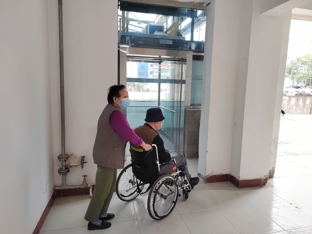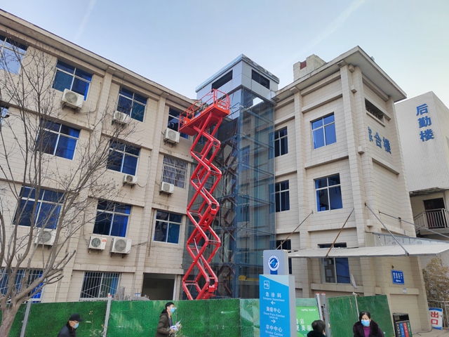 我院旧住院楼始建于建院初期70年代,楼高4层,上下楼梯采用斜坡式,为典型的苏式建筑风格,整栋楼现设置有康复医学科、骨科二病区、疼痛科、手术二部等医疗科室。由于历史条件所限以及地理和结构原因,加装电梯更是难上加难。而对于患者特别是老年患者来说,带来了极大的不便,特别是四楼康复医学科住院的年老体衰病患无法步行上楼,都是由医护人员用轮椅或者平车搬搬抬抬推上去的,经常有患者和家属热泪盈眶的说:“真是太辛苦你们了,你们这栋楼的楼梯又陡,又没电梯......”加装电梯一直是患者关注的民生问题,医院领导带领班子成员及相关科室主任多次现场办公,亲自指挥,费尽了心思,克服了老建筑结构难施工困难,在旧住院楼安装医用外挂电梯一部,彻底解决旧住院楼老人及行动不便者上下楼梯难的问题,来院患者无不点赞。现在,患者纷纷表示:“以前没电梯,都怕来住院,如今装上电梯,真是太好了!”新装电梯为患者提供了便利,医护人员也不再为推送患者上下楼而烦恼。