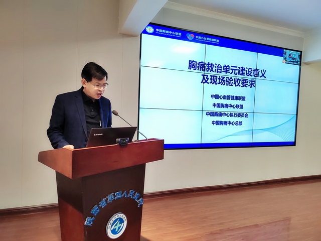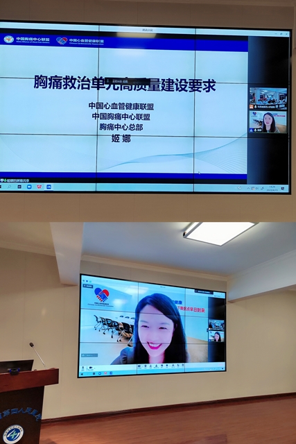 首先,院长贾延对陕西省胸痛中心联盟专家莅临表示欢迎,并对我院总体情况做了介绍。 接下来,陕西省胸痛中心联盟主席袁祖贻教授介绍胸痛救治单元建议意义及现场验收要求;中国胸痛中心总部培训部主任姬娜通过视频连线方式对胸痛救治单元高质量建设提出要求。验收专家组在听取了胸痛救治单元建设情况汇报,然后对相关文件、数据资料及胸痛救治单元运作情况进行了现场核查。并深入医院胸痛救治单元雁塔区等驾坡社区卫生服务中心、新城区韩森寨社区卫生服务中心、灞桥区普康医院实地查看实时数据,检查指引及胸痛优先标识,模拟患者检阅医务人员对高危胸痛的识别及处置能力等。专家组对三家胸痛救治单元建设工作表示肯定,并针对存在问题和不足进行了现场指导,提出了建设性意见,使基层医务人员受益良多。