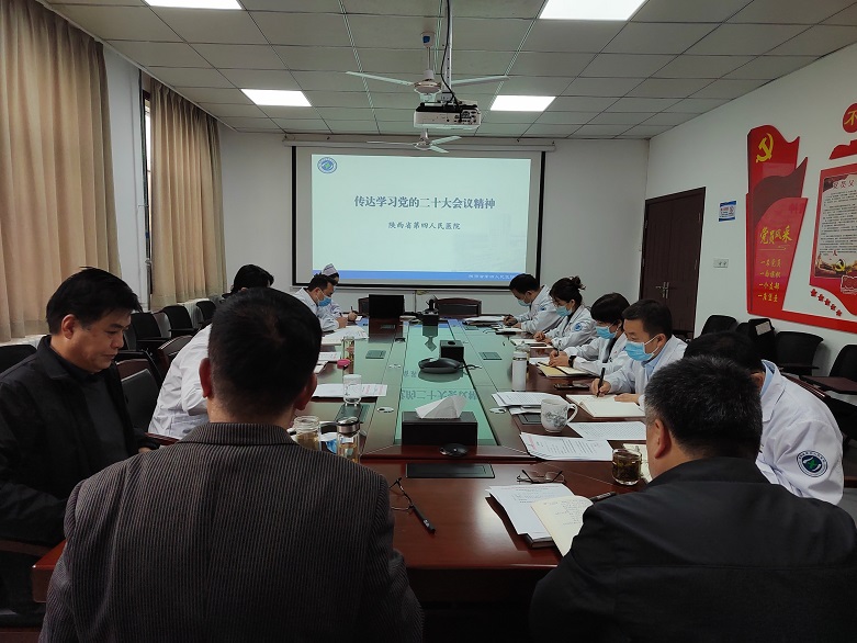 会议就我院学习贯彻落实党的二十大精神进行部署。一是提高政治站位,凝聚思想共识。将学习宣传贯彻党的二十大精神作为全院当前和今后一个时期的首要政治任务。要求全体党员干部职工努力提高政治站位,自觉把思想统一到党的二十大精神上来,在全院迅速掀起学习宣传贯彻党的二十大精神热潮。二是抓好理论学习,吃透精髓要义。通过党委理论中心组带头学、领导干部亲自讲,各党支部利用“三会一课”、主题党日、专题学习等形式开展集中学习研讨,各党支部书记带头讲党课等形式,将党的二十大精神列为学习培训的必修课,深刻领悟二十大精髓要义和重要内涵,做到学思用贯通、知信行统一。三是提高履职能力,切实担当作为。要把学习领会党的二十大精神与谋划当前和今后一段时期的工作结合起来,贯彻落实到全院事业发展过程中,将党的二十大精神学深、弄懂、悟透,运用到具体工作实践中,不断提高履行职责使命的能力和本领,对党绝对忠诚,勇于实干担当,为医院高质量发展做出更大贡献。