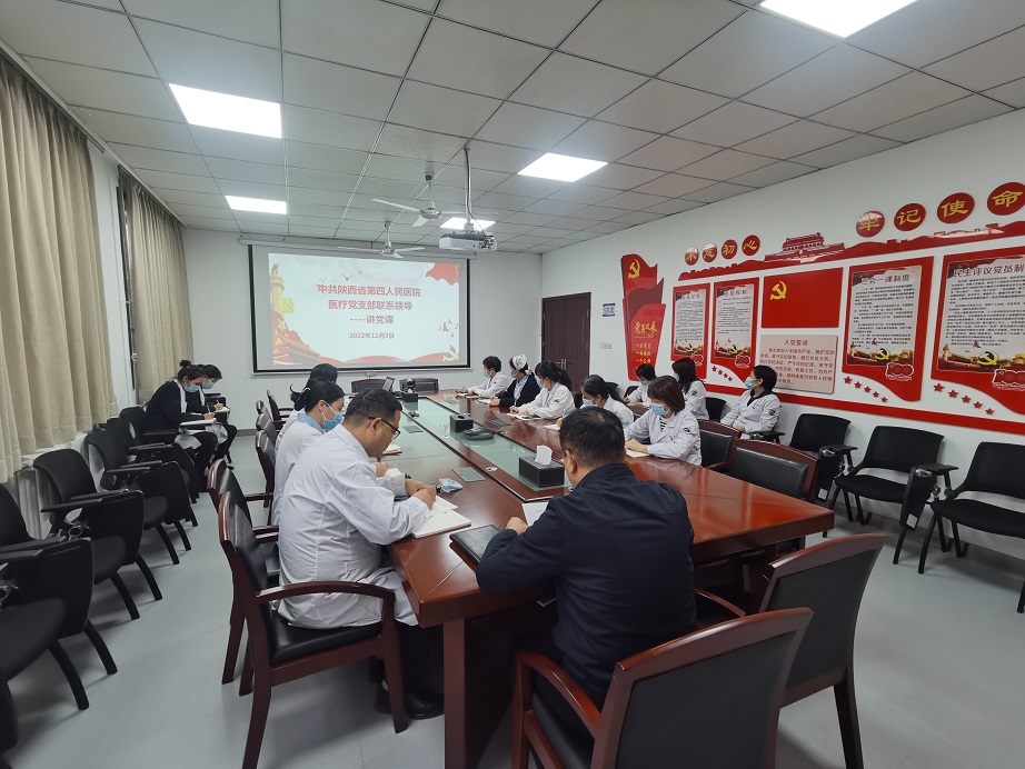 11月3日下午,医院党委书记郭亚东同志以普通党员的身份,参加医疗党支部主题党日活动并宣讲党的二十大精神,勉励支部党员要以党的二十大精神为指引,践行“人民至上、生命至上”守护好人民生命健康安全,闻令而动、勇挑重担、率先垂范,把学习宣传贯彻党的二十大精神转化为推动医院高质量发展的有效动力。医疗党支部书记、医务科主任韩丰立主持会议。
