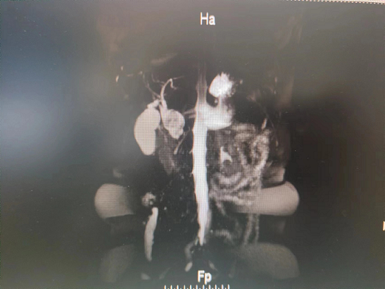 患者5月9日来我院就诊,门诊以“胆总管囊肿”收住院。入院后予完善相关检查后诊断:1.胆总管囊肿(Ⅰ型)并胆总管结石2.胆管炎?。随后给予抗炎、补充电解质,营养风险评估,营养支持等治疗,组织专家进行围术期术前评估、讨论,制定手术计划方案并征得家属和本人同意后,5月15日在普外科田德福主任的带领下,在任斌副主任、杨洲明主治医师的配合下及麻醉科的协助下,对患者行胆总管囊肿切除+胆总管空肠ROU-en-Y吻合术,手术顺利,病理结果提示无癌变。术后在何慢护士长团队的精心护理下,患者第2天就下床活动,第4天进流食。术后没有发生腹腔感染、出血、吻合口漏等相关并发症,术后相关实验室检查结果无异常,5月29日患者痊愈出院。
