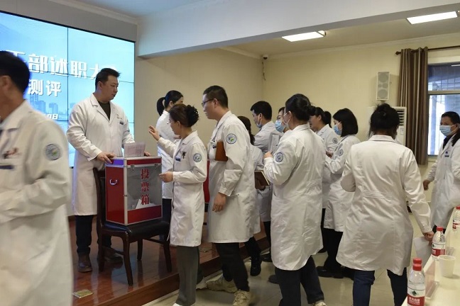 随后与会人员通过无记名投票的方式从德、能、勤、绩、廉等方面对院领导班子、中层干部进行现场测评。