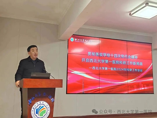 就当前如何做好科研工作提出了要求:一是要高度重视,充分认识科研工作的重大意义;二是要掌握方法,在校院融合发展中提高科研的能力;三是解决问题,实现科研工作质量的较快发展;四是主动担责,为医院科研发展贡献力量。最后他强调2024年要深入学习贯彻学校第十四次党代会精神,以科技为牵引,笃定目标、狠抓落实,以时不我待的精神,努力开创第一医院科技发展的新局面,为争创“双一流”大学贡献第一医院力量。