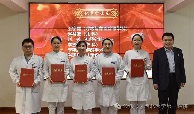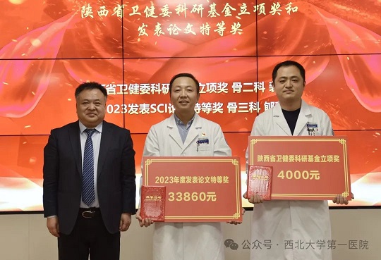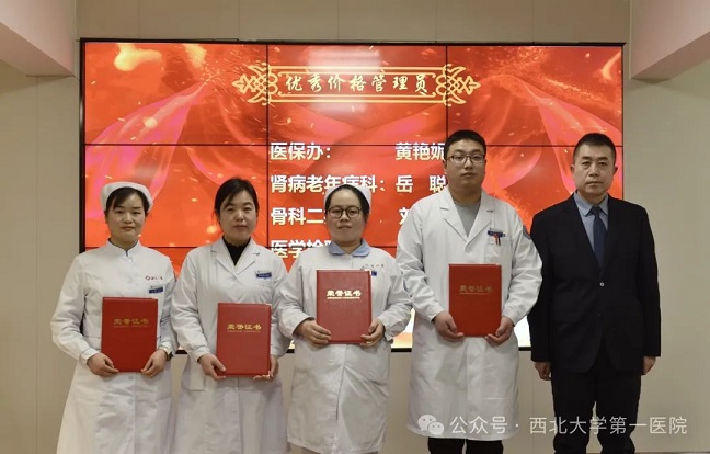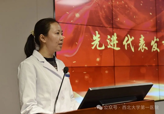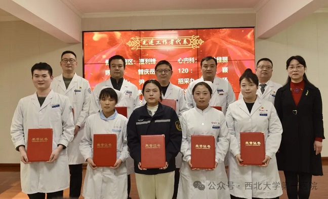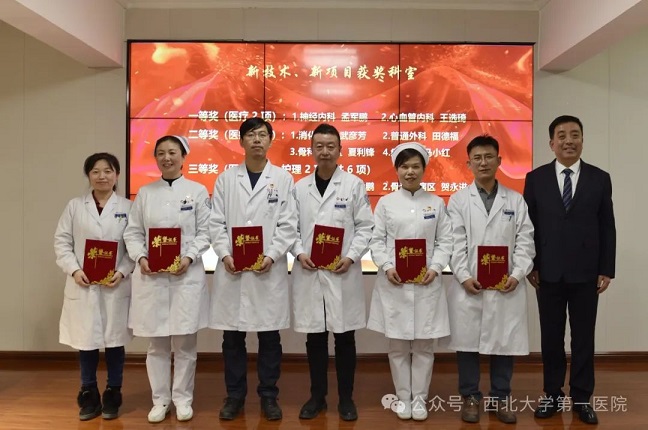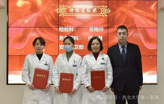 西北大学生命科学与医学部张宇书记、院领导班子为获奖的先进集体和先进个人颁发了奖牌和证书