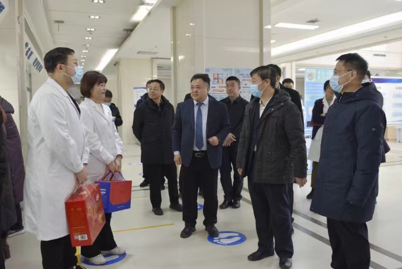 蒋林、孙庆伟一行先后来到医院急诊科、影像科、超声医学科、出入院一站式结算中心、监控室、肾病内科/老年病科、心内科,与一线医务人员亲切交谈、了解医院专科发展现状和临床诊疗工作情况并送上了慰问品,勉励大家在新的一年再接再厉、再立新功。