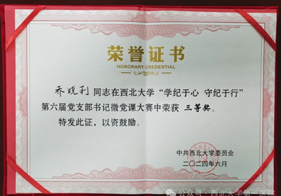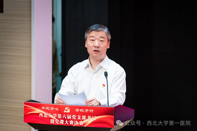 6月5日下午,西北大学第六届党支部书记微党课大赛在长安校区举行。校党委书记蒋林出席活动并讲话,校党委副书记、校长孙庆伟宣读获奖名单,在校领导、进入决赛的党支部书记以及各院系党委书记和师生党员代表参加了活动。校党委副书记赵作纽主持会议。我院外科第四党支书记、手术麻醉部主任乔晓利同志荣获比赛三等奖,这也是我院划转学校1年后首次参加校级比赛获得的校级荣誉。