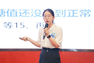 本次获奖课题为《糖尿病并发症之“要命”的低血糖》。李能护士基于临床护理实践选题,教学设计科学缜密,教学过程衔接有序,课件制作富有创意;在赛场上,李能护士“围绕8分钟讲故事”,教学特色鲜明,风格突出,感染力强,调动学生活跃参与,课堂氛围好,有效激发学生自主学习和探究学习的积极性,“教书”的同时做到“育人”,赢得了评委和观众的一致好评。