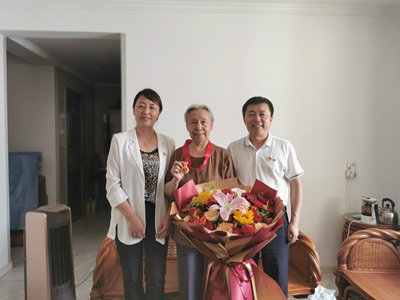 在老党员家中,郭亚东、陈晨、张小刚一行首先亲切询问了四名老党员的身体状况及家庭生活情况,感谢他们几十年来为党和医院事业发展所作出的贡献,与他们重温入党初心,共忆艰苦岁月,并致以节日问候,希望他们好好保重身体,永葆共产党员的本色。随后,院领导郑重地为入党已满五十年的四名老党员颁发纪念章并献上了鲜花。