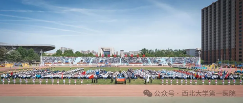 4月23日,西北大学体育文化节田径运动会在长安校区西体育场隆重开幕。第一医院领导班子带领30余名运动员组成的代表队,以昂扬的精神风貌亮相开幕式,并在竞技赛场上奋勇拼搏,以团结协作的姿态和锐意进取的信念,生动诠释了“医者仁心、勇攀高峰”的医院精神,为校院文化融合注入蓬勃活力。