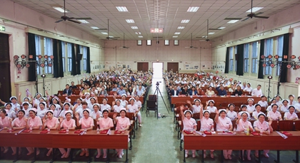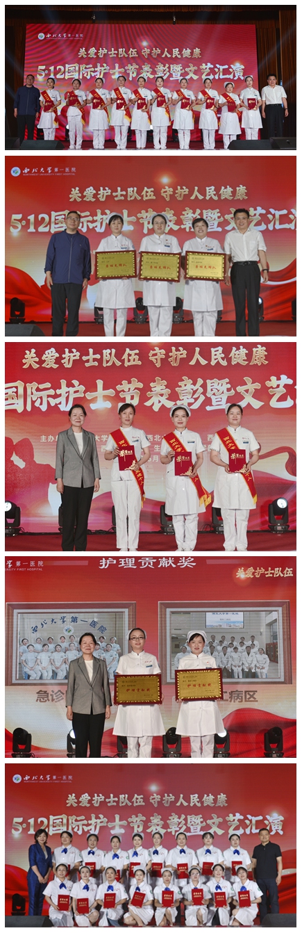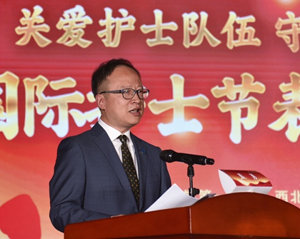 西北大学医学院院长赵钢总结讲话,代表学校向大家致以节日问候,也向受到表彰的护理团队和个人表示祝贺。第一医院划转西北大学以来,学校始终高度重视校院融合工作,给予持续性大力支持,落实学校十四次党代会精神。校党委明确提出创建三级甲等医院是当务之急,护理人员是这项工作的重要参与者,一定要主动学习,抓好护理队伍建设,强化优质护理服务,全面提升护理水平。提倡以德兴护、关爱生命。在即将迎来第一医院揭牌两周年之际,愿广大护士同志们继续努力,不负重托、不辱使命,主动站在医院发展的最前沿迎接挑战,再创佳绩!