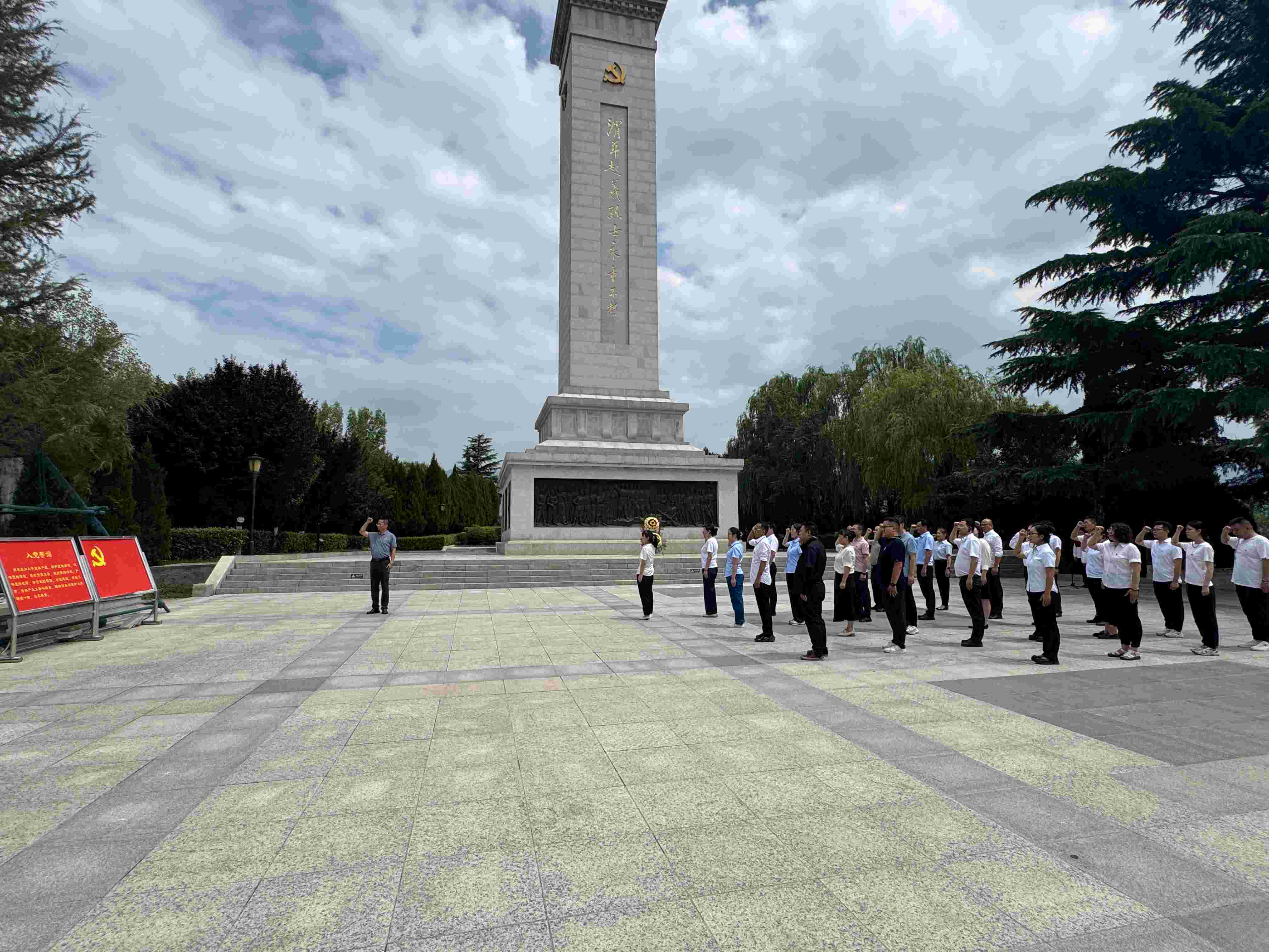 在庄严肃穆、松柏环绕的渭华起义纪念碑广场,全体人员高唱国歌。随后,啪啪啦 党委副书记潘君宇代表两院敬献花篮,深情追思革命先烈,表达崇高敬意。在纪念碑前,全体党员向革命先烈鞠躬致敬,表达对革命先烈的深切缅怀,面对党旗,重温入党誓词,坚定理想信念,感悟初心使命。同志们随后缓步绕行纪念碑,敬献鲜花、鞠躬致意,并凝神瞻仰碑文记载的革命事迹,在静默中与先烈精神对话,汲取信仰的力量。