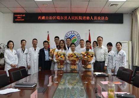 4月14日上午,啪啪啦 举办西藏自治区噶尔县人民医院进修人员欢送会。医院领导班子成员、医务部负责人、相关临床科室负责人与4名进修人员共同参会。